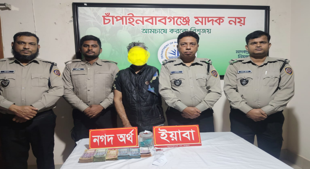 চাঁপাইনবাবগঞ্জে মাদকদ্রব্য নিয়ন্ত্রণ অধিদপ্তরের অভিযানে ইয়াবা ট্যাবলেট ও নগদ টাকাসহ এক ব্যক্তিকে গ্রেফতার করা হয়েছে। মাদকদ্রব্য নিয়ন্ত্রণ অধিদপ্তরের নিজস্ব সোর্সের মাধ্যমে জানতে পারে, (১৮ ফেব্রুয়ারি) বুধবার সকাল ৮টা থেকে ৮টা ৪০ মিনিট পর্যন্ত ডিএনসির এক চৌকস টহল দলের পরিচালিত অভিযানে শিবগঞ্জ থানাধীন নয়ালাভাঙ্গা গ্রামের একটি এলাকায় অভিযান চালানো হয়। মাদকদ্রব্য নিয়ন্ত্রণ অধিদপ্তরের অভিযানে মো: সুহেল রানা (৪০) নামে এক ব্যক্তিকে গ্রেফতার করা হয়। তিনি নয়ালাভাঙ্গা ইউনিয়নের নয়ালাভাঙ্গা গ্রামের মৃত ফজলার রহমানের ছেলে । এ সময় গ্রেফতারকৃত সুহের রানার কাছ থেকে ৪০০ (চারশত) পিস ইয়াবা ট্যাবলেট এবং নগদ ২,০২,১১০ (দুই লক্ষ দুই হাজার একশত দশ) টাকা বাংলাদেশী অর্থ উদ্ধার করা হয় বলে জানিয়েছে সংশ্লিষ্ট কর্তৃপক্ষ। এ ঘটনায় মাদকদ্রব্য নিয়ন্ত্রণ অধিদপ্তরের পরিদর্শক মো: রফিকুল ইসলাম। তিনি বাদী হয়ে শিবগঞ্জ থানায় একটি নিয়মিত মামলা দায়ের করেছেন।