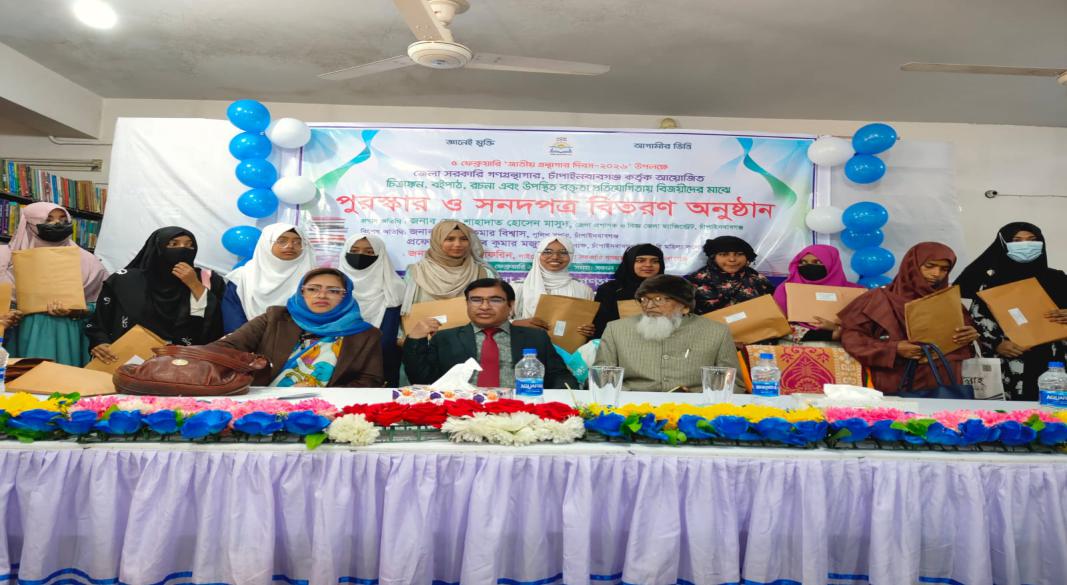 চাঁপাইনবাবগঞ্জে “জ্ঞানেই মুক্তি, আগামীর ভিত্তি”—এই স্লোগানকে সামনে রেখে যথাযোগ্য মর্যাদায় জাতীয় গ্রন্থাগার দিবস-২০২৬ উদযাপিত হয়েছে। দিবসটি উপলক্ষে নবমবারের মতো সারা দেশের ন্যায় জেলা সরকারি গণগ্রন্থাগার, চাঁপাইনবাবগঞ্জ-এর উদ্যোগে বর্ণাঢ্য র্যালী ও আলোচনা সভার আয়োজন করা হয়। ০৫ ফেব্রুয়ারি জেলা শহরে আয়োজিত বর্ণাঢ্য র্যালী শেষে জেলা সরকারি গণগ্রন্থাগার প্রাঙ্গণে আলোচনা সভা অনুষ্ঠিত হয়। অনুষ্ঠানে প্রধান অতিথি হিসেবে উপস্থিত ছিলেন চাঁপাইনবাবগঞ্জ অতিরিক্ত জেলা প্রশাসক ( সার্বিক) মোঃ নাকিব হাসান তরফদার। বিশেষ অতিথি হিসেবে উপস্থিত ছিলেন চাঁপাইনবাবগঞ্জ সরকারি মহিলা কলেজের অধ্যক্ষ ও বিশিষ্ট শিক্ষাবিদ প্রফেসর ড. বিপ্লব কুমার মজুমদার,চাঁপাইনবাবগঞ্জ অতিরিক্ত পুলিশ সুপার (প্রশাসন ও অর্থ), এ.এন.এম ওয়াসিম ফিরোজ। আলোচনা সভায় আরও উপস্থিত ছিলেন বিভিন্ন শিক্ষাপ্রতিষ্ঠানের শিক্ষক, অভিভাবকবৃন্দ, নবীন ও প্রবীণ পাঠক, এবং ছাত্র-ছাত্রীরা। অনুষ্ঠানে সভাপতিত্ব করেন , চাঁপাইনবাবগঞ্জে লাইব্রেরিয়ান, জেলা সরকারি গণগ্রন্থাগার সাজিয়া আফরিন। বক্তারা তাঁদের বক্তব্যে গ্রন্থাগারের গুরুত্ব তুলে ধরে বলেন, জ্ঞানচর্চা ও পাঠাভ্যাস গড়ে তুলতে গণগ্রন্থাগার গুরুত্বপূর্ণ ভূমিকা রাখছে। একটি আলোকিত ও সচেতন জাতি গঠনে বই পড়ার কোনো বিকল্প নেই বলেও বক্তারা উল্লেখ করেন। আলোচনা সভা শেষে জাতীয় গ্রন্থাগার দিবস উপলক্ষে আয়োজিত বিভিন্ন প্রতিযোগিতার মোট ২৯ জন বিজয়ীর মাঝে পুরস্কার ও সনদপত্র বিতরণ করা হয়। প্রতিযোগিতাগুলোর মধ্যে ছিল— চিত্রাঙ্কন প্রতিযোগিতা (৩টি গ্রুপে ১৪ জন), বইপাঠ প্রতিযোগিতা (উন্মুক্ত গ্রুপে ৬ জন), রচনা প্রতিযোগিতা (নবম–স্নাতকোত্তর গ্রুপে ৩ জন) এবং উপস্থিত বক্তৃতা প্রতিযোগিতা (২টি গ্রুপে ৬ জন)। দিনব্যাপী আয়োজিত এ কর্মসূচিতে অংশগ্রহণকারীদের মধ্যে ব্যাপক উৎসাহ-উদ্দীপনা লক্ষ্য করা যায়।
