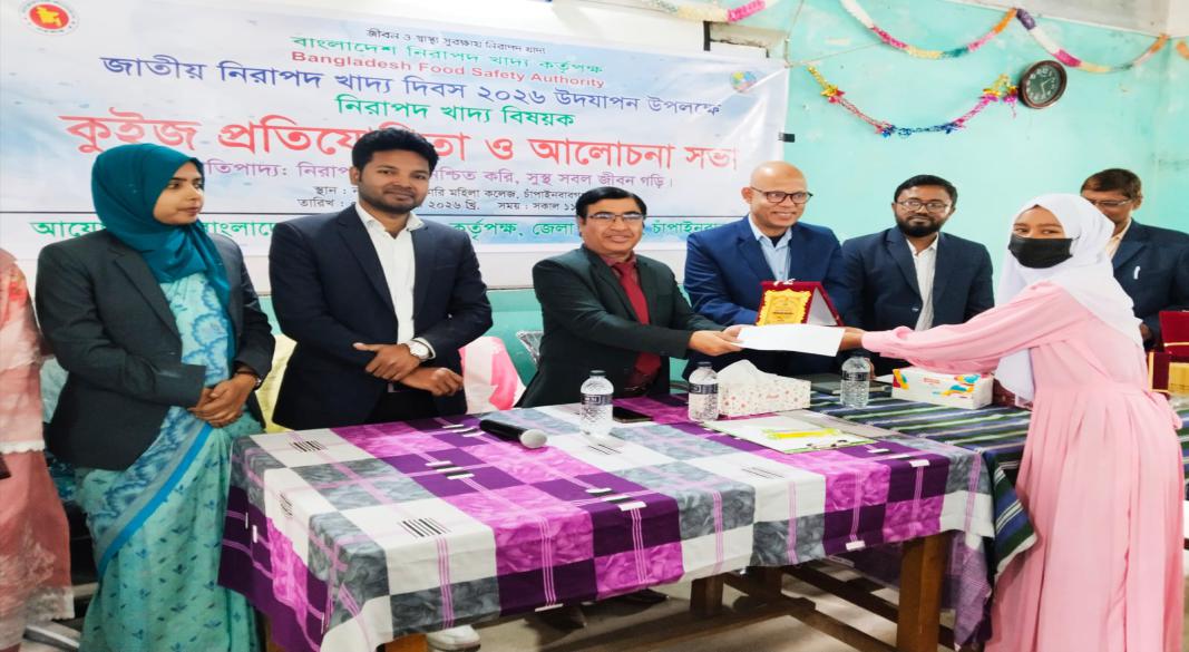 চাঁপাইনবাবগঞ্জে বাংলাদেশ নিরাপদ খাদ্য কর্তৃপক্ষের আয়োজনে জাতীয় নিরাপদ খাদ্য দিবস–২০২৬ উদযাপন করা হয়েছে। এ উপলক্ষে নিরাপদ খাদ্য বিষয়ক কুইজ প্রতিযোগিতা ও আলোচনা সভা অনুষ্ঠিত হয়।