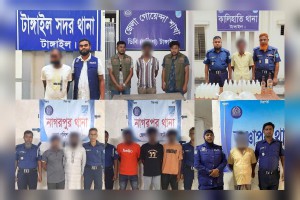 টাঙ্গাইলে পুলিশের বিশেষ অভিযানে ২৪ ঘণ্টায় গ্রেফতার ৪০ বিপুল পরিমাণ ইয়াবা, হেরোইন ও চোলাই মদ উদ্ধারটাঙ্গাইল জেলায় অপরাধ দমন ও আইনশৃঙ্খলা পরিস্থিতি স্বাভাবিক রাখতে জেলা পুলিশের চলমান বিশেষ অভিযানে গত ২৪ ঘণ্টায় ব্যাপক সাফল্য অর্জিত হয়েছে। এ সময় প্রিভেন্টিভ, নিয়মিত মামলা, মাদক ব্যবসা ও পরোয়ানাভুক্ত আসামিসহ মোট ৪০ জনকে গ্রেফতার করা হয়েছে।জেলা পুলিশ সূত্রে জানা যায়, জেলার সকল থানা ও ইউনিটের ইনচার্জদের সমন্বয়ে পরিচালিত এই অভিযানে মাঠপর্যায়ে কঠোর তৎপরতা চালানো হয়। টাঙ্গাইলের পুলিশ সুপারের সার্বিক নির্দেশনায় অপরাধ দমনে জোরালো অবস্থান নেয়। আইনশৃঙ্খলা বাহিনী। মাদকবিরোধী অভিযানে উল্লেখযোগ্য সাফল্যঅভিযানের অংশ হিসেবে মাদক উদ্ধার কার্যক্রমে উল্লেখযোগ্য পরিমাণ অবৈধ মাদকদ্রব্য জব্দ করা হয়। উদ্ধারকৃত মাদকের মধ্যে রয়েছে—৯৪ পিস ইয়াবা,১৩ গ্রাম হেরোইন,৭৩ লিটার ৫০০ গ্রাম চোলাই মদএ ঘটনায় মাদক ব্যবসার সঙ্গে জড়িত ১১ জনকে গ্রেফতার করা হয়েছে বলে জানিয়েছে পুলিশ। অপরাধ দমনে কঠোর অবস্থানজেলা পুলিশের পক্ষ থেকে জানানো হয়েছে, টাঙ্গাইলে অপরাধ নিয়ন্ত্রণে এ ধরনের অভিযান নিয়মিতভাবে পরিচালিত হবে। একই সঙ্গে সাধারণ জনগণকে অপরাধ ও অপরাধীদের তথ্য দিয়ে পুলিশকে সহযোগিতা করার আহ্বান জানানো হয়েছে।