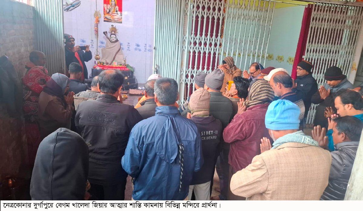 নেত্রকোনা দুর্গাপুরে বেগম খালেদা জিয়ার আত্মার শান্তি কামনায় বিভিন্ন মন্দিরে প্রার্থনা
