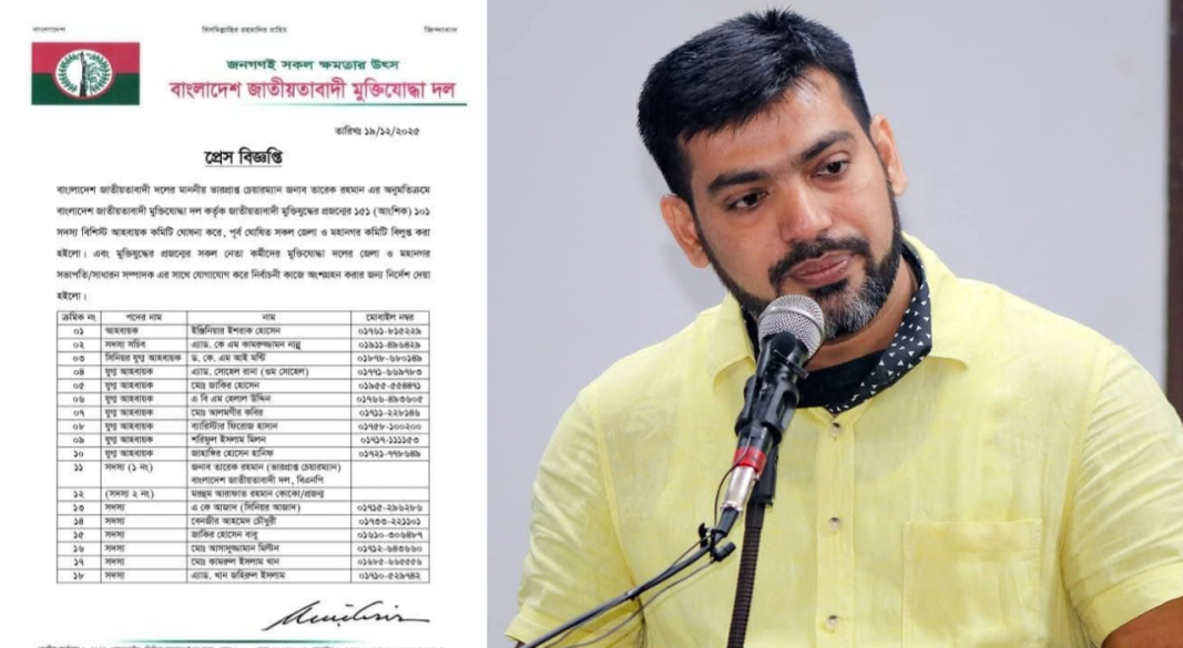 গতকাল বাংলাদেশ জাতীয়তাবাদী দল (বিএনপি) ভারপ্রাপ্ত চেয়ারম্যান তারেক রহমান -এর অনুমতিক্রমে বাংলাদেশ জাতীয়তাবাদী মুক্তিযোদ্ধা দল কর্তৃক জাতীয়তাবাদী মুক্তিযুদ্ধের প্রজন্মের ১৫১ (আংশিক) ১০১ সদস্য বিশিষ্ট আহবায়ক কমিটি ঘোষনা করে। পূর্ব ঘোষিত সকল জেলা ও মহানগর কমিটি বিলুপ্ত এই কমিটির স্বাক্ষরিত হয়।