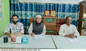 হেফাজতে ইসলাম বাংলাদেশ ভুঞাপুর উপজেলা শাখার উদ্যোগে নবগঠিত কমিটির পরিচিতি ও মতবিনিময় সভা অনুষ্ঠিত হয়েছে। আজ সোমবার (২৭ অক্টোবর ২০২৫) সকাল ১০টায় উপজেলার দেওয়ান বাড়ি বাহাতুন্নেসা হাফিজা মাদ্রাসা প্রাঙ্গণে এ সভা অনুষ্ঠিত হয়। পবিত্র কোরআন তেলাওয়াতের মধ্য দিয়ে অনুষ্ঠানের সূচনা হয়। তেলাওয়াত করেন হাফেজ ক্বারী মাওলানা আবু বকর সিদ্দিক। উদ্বোধনী বক্তব্য রাখেন হেফাজতে ইসলাম বাংলাদেশ ভুঞাপুর উপজেলা শাখার সভাপতি হাফেজ মাওলানা মাহ্ফুজুর রহমান (দা.বা.)। সভায় প্রধান আলোচ্য বিষয় ছিল— সমাজে ইসলামী শাসনতন্ত্র প্রতিষ্ঠার লক্ষ্যে করণীয়, আহলে হক উলামায়ে কেরামদের ঐক্য সুদৃঢ় করা এবং সংগঠনের সাংগঠনিক কাঠামোকে আরও সুসংগঠিত করার দিকনির্দেশনা। বক্তারা বলেন, বর্তমান সময়ে ইসলামবিরোধী বিভিন্ন ষড়যন্ত্র ও আন্তর্জাতিক জঙ্গি সংগঠন “ইসকন”-এর আত্মঘাতী কর্মকাণ্ড থেকে মুসলিম সমাজকে রক্ষা করতে ঐক্যবদ্ধভাবে কাজ করতে হবে। তারা আরও বলেন, আলেম ওলামাদের হক কথা বলার ক্ষেত্রে বা মসজিদের খেদমতে কোনো সমস্যার সম্মুখীন হলে হেফাজতে ইসলাম ভুঞাপুর উপজেলা শাখা যেন পাশে দাঁড়াতে পারে। সভায় বক্তব্য রাখেন সহ-সভাপতি হাফেজ মাওলানা মুফতি শহিদুল ইসলাম ভূঞাপুরী, সাংগঠনিক সম্পাদক মুফতি মুনজুরুল হাসান, সহ-আইনবিষয়ক সম্পাদক হাফেজ মাওলানা সালিম আহমাদ, সিনিয়র সহ-সভাপতি মুফতি আল আমিন কাসেমী, সহ-সভাপতি হাফেজ মাওলানা শফিউর রহমান, সহ-সভাপতি মাওলানা আব্দুস সালাম, সাহিত্য ও সাংস্কৃতিক বিষয়ক সম্পাদক মোল্লা হযরত আলী, মুফতি আবু ইউসুফ, সহ-সভাপতি হাফেজ মাওলানা আব্দুল কাদের, মাওলানা মাহদী হাসান শিবলী, সহ-সাংগঠনিক সম্পাদক মাওলানা আব্দুর রাজ্জাক, শিক্ষা ও গবেষণা বিষয়ক সম্পাদক মাওলানা আব্দুল্লাহ আল হুসাইন, সমাজকল্যাণ বিষয়ক সম্পাদক মুফতি সোহাইল হাসান এবং সহ-সাংগঠনিক সম্পাদক মুফতি সাব্বির আহমাদ প্রমুখ। সর্বশেষে নবগঠিত কমিটির সদস্যদের নাম ঘোষণা করেন সংগঠনের সাধারণ সম্পাদক মুফতি শহীদুল্লাহ্ আন্দিপুরী (দা.বা.)। দোয়া ও মোনাজাত পরিচালনা করে সভার সমাপ্তি ঘোষণা করেন সভাপতি হাফেজ মাওলানা মাহ্ফুজুর রহমান (দা.বা.)।