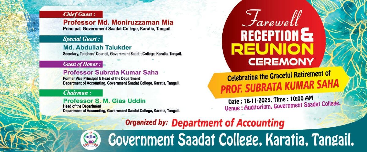 ১৬,১৭,১৮ নভেম্বর টানা তৃতীয় দিনের মত সরকারি সা'দত কলেজ প্রভাষকবৃন্দ কর্মবিরতি পালন করলো। তাদের দাবি ৩ টিঃ- ১।শিক্ষা মন্ত্রণালয় কতৃক যোগ্য সকলের প্রভাষক থেকে সহকারী অধ্যাপক পদোন্নতির প্রজ্ঞাপন জারি করা। ২.শিক্ষা মন্ত্রণালয় কর্তৃক জারিকৃত ২০০০ বিধির কলেজসমূহে জাতীয়করণের তারিখ হতে ক্যাডারভুক্তির নিয়মিত করণের সকল অবৈধ প্রজ্ঞাপন সমূহ বাতিল করতে হবে। ৩. শিক্ষা মন্ত্রণালয় কতৃক দ্রুত মামলা নিষ্পত্তির ব্যবস্থা গ্রহণ করা। "No promotion, No work" কর্মসূচি চলমান থাকবে। ১৯/১১/২৫ তারিখ মাউশিতেও অবস্থান কর্মসূচি পালিত হবে।