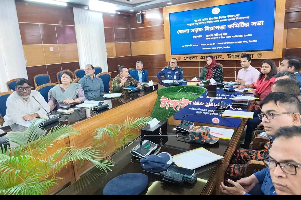 টাঙ্গাইল জেলা সড়ক নিরাপত্তা কমিটির সভা অনুষ্ঠিত ২৬ ফেব্রুয়ারি ২০২৬ ইং তারিখে টাঙ্গাইল জেলা সড়ক নিরাপত্তা কমিটির এক গুরুত্বপূর্ণ সভা আজ জেলা প্রশাসকের সম্মেলন কক্ষে অনুষ্ঠিত হয়েছে। সভায় সভাপতিত্ব করেন টাঙ্গাইলের জেলা প্রশাসক ও বিজ্ঞ জেলা ম্যাজিস্ট্রেট জনাব শরীফা হক।সভায় জেলার সার্বিক সড়ক নিরাপত্তা পরিস্থিতি সড়ক দুর্ঘটনা হ্রাসে করণীয় পদক্ষেপ যানবাহনের গতি নিয়ন্ত্রণ হেলমেট ও সিটবেল্ট ব্যবহার নিশ্চিতকরণ অবৈধ যানবাহন চলাচল বন্ধ এবং জনসচেতনতা বৃদ্ধির বিষয়গুলো গুরুত্বের সঙ্গে আলোচনা করা হয়। এছাড়া দুর্ঘটনাপ্রবণ স্থানগুলো চিহ্নিত করে প্রয়োজনীয় সতর্কতামূলক সাইনবোর্ড স্থাপন এবং নিয়মিত ভ্রাম্যমাণ আদালত পরিচালনার ওপর জোর দেওয়া হয়।সভাপতির বক্তব্যে জেলা প্রশাসক জনাব শরীফা হক বলেন সড়ক দুর্ঘটনা রোধে সকল দপ্তরের সমন্বিত উদ্যোগ প্রয়োজন। আইন প্রয়োগের পাশাপাশি সাধারণ মানুষের মধ্যে সচেতনতা সৃষ্টি করতে হবে। তিনি সংশ্লিষ্ট সকলকে দায়িত্বশীল ভূমিকা পালনের আহ্বান জানান।সভায় পুলিশ বিভাগ বিআরটিএ সড়ক ও জনপথ বিভাগ ফায়ার সার্ভিস পরিবহন মালিক-শ্রমিক প্রতিনিধি এবং বিভিন্ন সরকারি দপ্তরের কর্মকর্তারা উপস্থিত ছিলেন।সভা শেষে সড়ক নিরাপত্তা নিশ্চিত করতে গৃহীত সিদ্ধান্তসমূহ দ্রুত বাস্তবায়নের প্রত্যয় ব্যক্ত করা হয়।