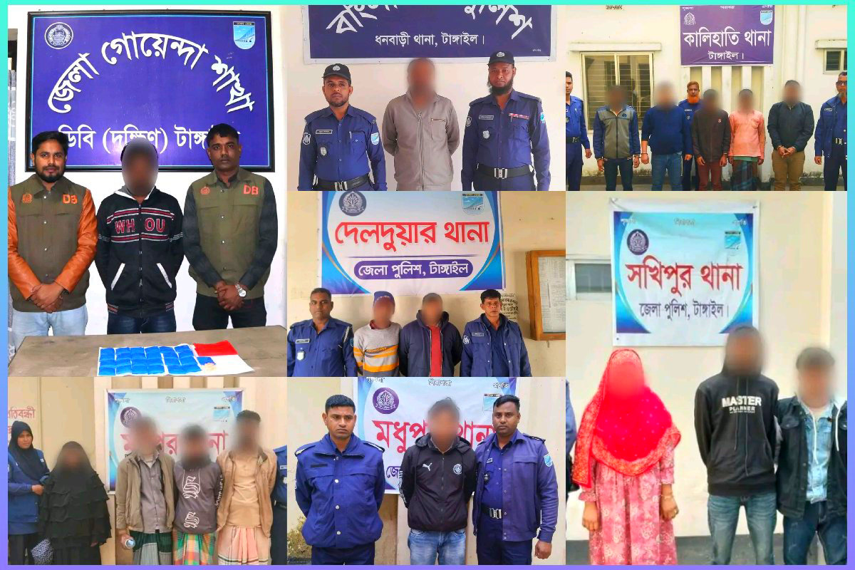 টাঙ্গাইলে জেলা পুলিশের জোরালো অভিযানে ২৮ জন গ্রেপ্তার ৩ হাজার ইয়াবা উদ্ধার ২১ জানুয়ারী ২০২৬ ইং,টাঙ্গাইল জেলায় মাদক সন্ত্রাস ও বিভিন্ন অপরাধমূলক কর্মকাণ্ড দমনে জেলা পুলিশের চলমান বিশেষ ও নিয়মিত অভিযানে উল্লেখযোগ্য সাফল্য অর্জিত হয়েছে। গত ২৪ ঘণ্টায় জেলার বিভিন্ন থানা এলাকায় পরিচালিত একাধিক অভিযানে মাদক উদ্ধারসহ প্রিভেন্টিভ নিয়মিত মামলা ও পরোয়ানাভুক্ত আসামিসহ মোট ২৮ জনকে গ্রেপ্তার করেছে টাঙ্গাইল জেলা পুলিশ।জেলা পুলিশ সূত্রে জানা যায়, টাঙ্গাইল জেলার সার্বিক আইনশৃঙ্খলা পরিস্থিতি স্বাভাবিক ও জননিরাপত্তা নিশ্চিত করার লক্ষ্যে সম্মানিত পুলিশ সুপার টাঙ্গাইল মহোদয় জেলার সকল থানা ও ইউনিটের ইনচার্জদের মাঠে থেকে কঠোর ও সমন্বিত অভিযান পরিচালনার নির্দেশ প্রদান করেন। তারই আলোকে জেলা পুলিশের বিভিন্ন ইউনিট একযোগে অপরাধবিরোধী অভিযান জোরদার করে। অভিযান চলাকালে প্রিভেন্টিভ আইনে গ্রেপ্তারকৃত ব্যক্তি নিয়মিত মামলার আসামি আদালতের পরোয়ানাভুক্ত পলাতক আসামি এবং মাদক সংশ্লিষ্ট অপরাধে জড়িত ব্যক্তিদের শনাক্ত করে আইনের আওতায় আনা হয়। এর অংশ হিসেবে মাদকবিরোধী বিশেষ অভিযানে ৩,০০০ পিস ইয়াবা ট্যাবলেট উদ্ধার করা হয় এবং এ ঘটনায় ১ জন পেশাদার মাদক ব্যবসায়ীকে হাতেনাতে গ্রেপ্তার করা হয়। পুলিশ জানায় উদ্ধারকৃত মাদকদ্রব্যের বিষয়ে সংশ্লিষ্ট আইনে মামলা রুজু করা হয়েছে এবং গ্রেপ্তারকৃত আসামিদের বিরুদ্ধে আইনানুগ ব্যবস্থা গ্রহণ প্রক্রিয়াধীন রয়েছে। একই সঙ্গে আদালতের মাধ্যমে তাদের বিচার নিশ্চিত করা হবে।টাঙ্গাইল জেলা পুলিশ আরও জানায় মাদক ও অপরাধের বিরুদ্ধে জিরো টলারেন্স নীতি অনুসরণ করে ভবিষ্যতেও এ ধরনের অভিযান অব্যাহত থাকবে। জেলার প্রতিটি থানা এলাকায় অপরাধী ও অপরাধ চক্রের বিরুদ্ধে গোয়েন্দা নজরদারি বাড়ানো হয়েছে। জেলা পুলিশের পক্ষ থেকে সাধারণ জনগণের প্রতি আহ্বান জানানো হয়েছে।কোনো অপরাধ বা অপরাধীর বিষয়ে তথ্য জানা থাকলে নিকটস্থ থানায় যোগাযোগ অথবা জেলা পুলিশের নির্ধারিত মাধ্যমে তথ্য প্রদান করার জন্য।