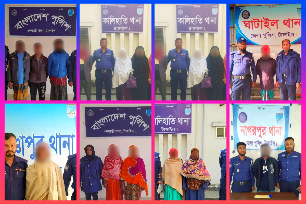 টাঙ্গাইল জেলা পুলিশের অভিযানে মাদক উদ্ধারসহ প্রিভেন্টিভ পরোয়ানাভুক্ত ও নিয়মিত মামলায় গ্রেপ্তার ৩৩
