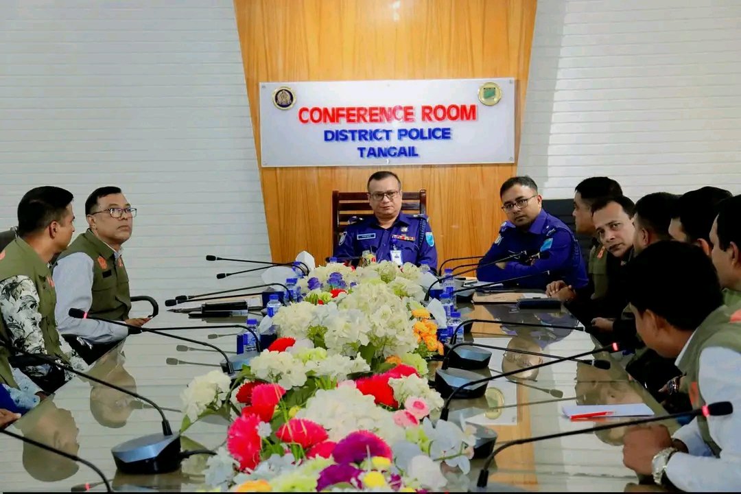 টাঙ্গাইলে জেলা পুলিশের উদ্যোগে ডিবির সঙ্গে পুলিশ সুপারের গুরুত্বপূর্ণ মতবিনিময় সভা টাঙ্গাইল জেলা পুলিশের উদ্যোগে পুলিশ সুপারের কার্যালয়ের সম্মেলন কক্ষে জেলা গোয়েন্দা শাখা (ডিবি), টাঙ্গাইলের সকল অফিসার ও ফোর্সদের সঙ্গে এক গুরুত্বপূর্ণ মতবিনিময় সভা অনুষ্ঠিত হয়েছে। জেলা পুলিশের গোয়েন্দা কার্যক্রমকে আরও শক্তিশালী ও গতিশীল করার লক্ষ্যে আয়োজিত এই সভায় সভাপতিত্ব করেন টাঙ্গাইলের পুলিশ সুপার জনাব মুহম্মদ শামসুল আলম সরকার।সভা শুরুর আগে জেলা গোয়েন্দা শাখা (ডিবি), টাঙ্গাইলের পক্ষ থেকে পুলিশ সুপার মহোদয়কে ফুলেল শুভেচ্ছা জানানো হয়। এ সময় ডিবির সকল স্তরের পুলিশ সদস্যরা উপস্থিত ছিলেন। মতবিনিময় সভায় পুলিশ সুপার জনাব মুহম্মদ শামসুল আলম সরকার জেলার সার্বিক আইন-শৃঙ্খলা পরিস্থিতি নিয়ন্ত্রণে রাখার পাশাপাশি গোয়েন্দা তথ্য সংগ্রহ কার্যক্রম আরও জোরদার করার ওপর গুরুত্বারোপ করেন। তিনি বলেন, সময়োপযোগী ও অগ্রিম গোয়েন্দা তথ্যের ভিত্তিতে অবৈধ অস্ত্র, গোলাবারুদ ও মাদক উদ্ধারে অভিযান জোরদার করতে হবে। একই সঙ্গে মামলা রুজুসহ সন্ত্রাসী ও সংঘবদ্ধ অপরাধী চক্রের বিরুদ্ধে কঠোর ও কার্যকর পদক্ষেপ গ্রহণের নির্দেশনা দেন তিনি। পুলিশ সুপার আরও বলেন, জনগণের আস্থা অর্জনে পুলিশ সদস্যদের সততা, ন্যায়নিষ্ঠা ও পেশাদারিত্ব বজায় রেখে দায়িত্ব পালন করতে হবে। দায়িত্ব পালনের ক্ষেত্রে কোনো ধরনের শৈথিল্য বা পক্ষপাতিত্ব বরদাশত করা হবে না বলেও তিনি স্পষ্ট করেন। সভায় আসন্ন জাতীয় সংসদ নির্বাচন ও গণভোটকে কেন্দ্র করে পুলিশের ভূমিকা নিয়েও গুরুত্বপূর্ণ দিকনির্দেশনা প্রদান করেন পুলিশ সুপার। তিনি জানান, নির্বাচন ও গণভোট চলাকালে আইন-শৃঙ্খলা রক্ষা এবং ভোটারদের নিরাপত্তা নিশ্চিত করতে পুলিশ বাহিনী সর্বোচ্চ সতর্কতা ও দায়িত্বশীলতার সঙ্গে কাজ করবে। এ ক্ষেত্রে পুলিশ বাহিনী সম্পূর্ণ নিরপেক্ষতা, স্বচ্ছতা ও পেশাদারিত্ব বজায় রেখে দায়িত্ব পালন করবে বলে তিনি দৃঢ় প্রত্যয় ব্যক্ত করেন।মতবিনিময় সভায় উপস্থিত ডিবির অফিসার ও ফোর্সরা পুলিশ সুপারের দিকনির্দেশনাকে আন্তরিকভাবে গ্রহণ করেন এবং দায়িত্ব পালনে আরও নিষ্ঠা ও তৎপরতার সঙ্গে কাজ করার অঙ্গীকার ব্যক্ত করেন।টাঙ্গাইলে জেলা পুলিশের উদ্যোগে ডিবির সঙ্গে পুলিশ সুপারের গুরুত্বপূর্ণ মতবিনিময় সভা পুলিশ সুপারের কার্যালয়ের সম্মেলন কক্ষে জেলা গোয়েন্দা শাখা (ডিবি), টাঙ্গাইলের সকল অফিসার ও ফোর্সদের সঙ্গে এক গুরুত্বপূর্ণ মতবিনিময় সভা অনুষ্ঠিত হয়েছে। জেলা পুলিশের গোয়েন্দা কার্যক্রমকে আরও শক্তিশালী ও গতিশীল করার লক্ষ্যে আয়োজিত এই সভায় সভাপতিত্ব করেন টাঙ্গাইলের পুলিশ সুপার জনাব মুহম্মদ শামসুল আলম সরকার।