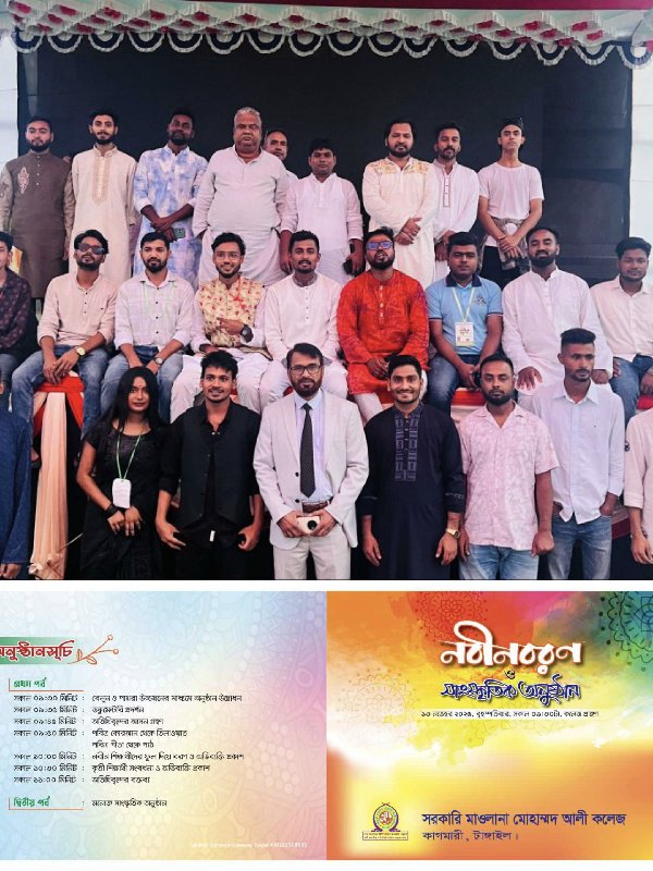 সাজিদ পিয়াল: টাঙ্গাইলে মাওলানা মোহাম্মদ আলী কলেজে নবীনবরণ উৎসব অনুষ্ঠিত। টাঙ্গাইল সদরের ১৩ নভেম্বর ২০২৫ ইং তারিখে সকাল থেকেই ঐতিহ্যবাহী শিক্ষা প্রতিষ্ঠান সরকারি মাওলানা মোহাম্মদ আলী কলেজে বা এমএম আলী কলেজে বৃহস্পতিবার উৎসবমুখর পরিবেশে অনুষ্ঠিত হয়েছে ২০২৫-২০২৬ শিক্ষাবর্ষের নবীনবরণ অনুষ্ঠান। নতুন শিক্ষার্থীদের স্বাগত জানাতে সকাল থেকেই কলেজ প্রাঙ্গণে উৎসবের আমেজ ছড়িয়ে পড়ে। অনুষ্ঠানের শুরুতে জাতীয় সংগীত পরিবেশন শেষে পবিত্র কোরআন তেলাওয়াত ও গীতিনাট্যের মাধ্যমে উদ্বোধন হয় নবীনবরণ অনুষ্ঠান। পরে কলেজের অধ্যক্ষ (অধ্যক্ষের নাম, জানা থাকলে) নবীন শিক্ষার্থীদের উদ্দেশ্যে শুভেচ্ছা বক্তব্য রাখেন। তিনি বলেন, “শিক্ষার মূল উদ্দেশ্য শুধুমাত্র ভালো ফল অর্জন নয়, বরং একজন সৎ, মানবিক ও দায়িত্বশীল নাগরিক হিসেবে গড়ে ওঠা।” অনুষ্ঠানে উপস্থিত ছিলেন কলেজের শিক্ষক পরিষদের সভাপতি, সহকারী অধ্যাপকবৃন্দ, বিভিন্ন বিভাগের প্রধান ও প্রশাসনিক কর্মকর্তারা। সিনিয়র শিক্ষার্থীরা নবীনদের ফুল দিয়ে বরণ করে নেয় এবং কলেজের ঐতিহ্য, নিয়মনীতি ও কার্যক্রম সম্পর্কে ধারণা প্রদান করে। বক্তারা নবীন শিক্ষার্থীদের নিয়মিত ক্লাসে অংশগ্রহণ, শৃঙ্খলা বজায় রাখা ও সামাজিক-সাংস্কৃতিক কর্মকাণ্ডে সম্পৃক্ত হওয়ার আহ্বান জানান। পাশাপাশি তারা শিক্ষার্থীদের মধ্যে মানবিকতা, সহনশীলতা ও দেশপ্রেমের চেতনা জাগিয়ে তোলার আহ্বানও জানান। অনুষ্ঠানে নবীন শিক্ষার্থীদের অংশগ্রহণে মনোজ্ঞ সাংস্কৃতিক পরিবেশনা, সংগীত, নৃত্য ও কবিতা পাঠ অনুষ্ঠিত হয়। শিক্ষার্থীদের পরিবেশনায় দর্শকসারি মুখরিত হয়ে ওঠে। দিনব্যাপী এই আয়োজনকে কেন্দ্র করে কলেজ ক্যাম্পাসে এক আনন্দঘন পরিবেশের সৃষ্টি হয়। নবীন শিক্ষার্থীদের উপস্থিতিতে ক্যাম্পাসে প্রাণ ফিরে আসে। অনুষ্ঠান শেষে সবার মধ্যে মিষ্টি বিতরণ করা হয়।