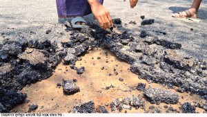 স্থানীয়দের দীর্ঘদিনের দাবির প্রেক্ষিতে দুর্গাপুর ইউনিয়নের চারিয়া মাসকান্দা থেকে মাকড়াইল বাজার পর্যন্ত নির্মিত হচ্ছে গুরুতপূর্ণ এই সড়কটি। সড়কে অন্যান্য কাজ শেষ হওয়ার পরেই চলমান ছিলো পিচ ঢালাইয়ের কাজ। পাঁচদিন হয় শেষ হয়েছে পিচ ঢালাইয়ের কাজ। এরই মধ্যে হাতের টানেই উঠে যাচ্ছে রাস্তার পিচ। নেত্রকোনার দুর্গাপুর উপজেলায় স¤প্রতি সংস্কার কাজ শুরু হলে খুশি হন এলাকাবাসী। তবে কাজ শেষ না হতেই দেখা দিয়েছে অনিয়ম। শনিবার (১১ এপ্রিল) দুপুরে সরেজমিনে গিয়ে দেখা যায়, হাতের টানেই উঠে যাচ্ছে সড়কের পিচ ঢালাই। এমন চিত্র দেখে হতাশ স্থানীয়রা। তাদের আশঙ্কা, দায়সারাভাবে কাজ করায় সড়কটি বেশিদিন টেকসই হবে না। কৃষকদের উৎপাদিত ফসল পরিবহনের জন্য অত্যন্ত গুরুত্বপূর্ণ। কিন্তু এমন নিম্নমানের কাজ নিয়ে উদ্বেগ প্রকাশ করেছেন এলাকাবাসী। এর দায়ভার কার ? এমন প্রশ্নই এলাকাবাসীর। খোঁজ নিয়ে জানা গেছে, স্থানীয় সরকার প্রকৌশল অধিদপ্তর (এলজিইডি) এর আওতায় ২০২৪-২৫ অর্থবছরে ১ কোটি ৩৮ লাখ ৫ হাজার টাকা ব্যয়ে কাজটি পায় মেসার্স তাজ উদ্দিন ফরাস নামে একটি ঠিকাদারি প্রতিষ্ঠান। যার কার্য মেয়াদ শেষ হওয়ার কথা চলতি বছরের আগস্ট মাসে। ইতোমধ্যে চলমান কাজে ব্যাপক অনিয়মের অভিযোগ উঠেছে। এ বিষয়ে ঠিকাদারি প্রতিষ্ঠানের সঙ্গে যোগাযোগের চেষ্টা করা হলেও তাদের কাউকে ওই এলাকায় পাওয়া যায়নি। স্থানীয় বাসিন্দা মো. জহিরুল ইসলাম বলেন, এই রাস্তা দিয়ে মসজিদ, মাদ্রাসা, স্কুল-কলেজ, হাটবাজার সহ সব জায়গায় যাতায়াত করতে হয়। আমরা এতদিন অবহেলিত ছিলাম। কাজ শুরু হওয়ায় খুশি হয়েছিলাম। কিন্তু এখন দেখা যাচ্ছে কাজের মান অত্যন্ত নিম্নমানের। মাত্র পাঁচ দিন হলো পিচ ঢালাই করা হয়েছে, কিন্ত এখন হাতে টান দিলেই পিচ উঠে যাচ্ছে। তাজ্জত আলী নামের একজন বলেন, এক ধরনের তেল আছে, সেটা (বিটুমিন) সড়কে না দিয়ে ঢালাই দিয়েছে। আমি এমন অনিয়ম দেখে প্রতিবাদ করেছিলাম, কিন্তু ঠিকাদারের লোকজন তা শোনেননি। উল্টো হুমকি-ধমকি দিয়েছেন। আব্দুল হামিদ জানান, ছেপ দিয়া লেপ দিছে এটাকে বলে। আমরা এমন রাস্তা চাই নাই। আগে কাঁদা দিয়ে হেঁটে চলতে হইছে, এখন এই রাস্তা যদি এইভাবে করে তাহলে এক মাসও টিকবে না। চারিয়া সরকারি প্রাথমিক বিদ্যালয়ের প্রধান শিক্ষক মো. জহিরুল হক বলেন, আমাদের এই রাস্তা দিয়ে অনেক কষ্ট করে চলাচল করতে হয়েছে। এই রাস্তা তো বারবার হবে না। যে অবস্থায় রাস্তা নির্মান করা হয়েছে, তাতে অল্পদিনের মাঝেই নষ্ট হয়ে যাবে সড়কটি। সরকার কোটি টাকা ব্যয় করছে, অথচ কাজের মান যদি এমন হয় তবে তা শুধু টাকার অপচয় হওয়া ছাড়া কিছুই না। কাজের বিষয়ে উপজেলা এলজিইডি প্রকৌশলী মো. মনিরুজ্জামান বলেন, কার্পেটিং কাজের শুরুর পরদ
