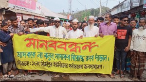 গোপালপুর উপজেলা-এ মাদকবিরোধী মানববন্ধন ও সমাবেশ অনুষ্ঠিত “মাদককে না বলুন মাদকের বিরুদ্ধে রুখে দাঁড়ান”—এই প্রত্যয়ে টাঙ্গাইলের মির্জাপুর বাজার এলাকায় মাদকবিরোধী মানববন্ধন ও প্রতিবাদ সমাবেশ অনুষ্ঠিত হয়েছে। সমাজ থেকে মাদক নির্মূলে জনসচেতনতা বৃদ্ধি এবং তরুণ প্রজন্মকে ধ্বংসের হাত থেকে রক্ষার লক্ষ্যে স্থানীয় এলাকাবাসীর উদ্যোগে এ কর্মসূচির আয়োজন করা হয়।শুক্রবার (২৭ ফেব্রুয়ারি) বিকেলে আয়োজিত এ মানববন্ধনে বিভিন্ন শ্রেণি-পেশার মানুষ স্বতঃস্ফূর্তভাবে অংশগ্রহণ করেন। কর্মসূচিটি সার্বিকভাবে পরিচালনা ও দিকনির্দেশনা দেন গোপালপুর উপজেলা কৃষক দলের দপ্তর সম্পাদক ও সাবেক ছাত্রনেতা, জিবিজি কলেজ ছাত্র সংসদ-এর সাবেক সাধারণ সম্পাদক রবি আলম (ফটিক)।মানববন্ধন ও সমাবেশে বক্তব্য রাখেন ওয়ার্ড বিএনপির সভাপতি দুলাল তরফদার শ্রমিক নেতা মিন্টু মিয়া জুলাই আন্দোলনের ছাত্রনেতা মানিক হোসেনসহ স্থানীয় রাজনৈতিক, সামাজিক ও ছাত্রনেতৃবৃন্দ। এছাড়াও বাংলাদেশ জাতীয়তাবাদী দল (বিএনপি) ও এর অঙ্গ ও সহযোগী সংগঠনের নেতাকর্মী, মির্জাপুর বাজারের ব্যবসায়ী, শিক্ষার্থী এবং সর্বস্তরের সাধারণ জনগণ অংশ নেন।বক্তারা বলেন মাদক আজ সমাজের জন্য এক ভয়াবহ অভিশাপ হয়ে দাঁড়িয়েছে। মাদকের করাল গ্রাসে পরিবার ধ্বংস হচ্ছে, অপরাধ প্রবণতা বাড়ছে এবং সবচেয়ে বেশি ক্ষতিগ্রস্ত হচ্ছে তরুণ প্রজন্ম। তারা জোর দিয়ে বলেন, কেবল আইনশৃঙ্খলা বাহিনীর ওপর নির্ভর করলে চলবে না মাদকের বিরুদ্ধে সামাজিক আন্দোলন গড়ে তুলতে হবে এবং প্রতিটি পরিবারকে সচেতন হতে হবে।বক্তারা আরও উল্লেখ করেন মাদক ব্যবসায়ীরা সমাজের শত্রু। তাদের সঙ্গে প্রত্যক্ষ বা পরোক্ষভাবে জড়িত ব্যক্তি ও গোষ্ঠীর বিরুদ্ধেও কঠোর ব্যবস্থা গ্রহণের দাবি জানানো হয়। একই সঙ্গে মাদক ব্যবসায়ী ও তাদের সহযোগীদের বিরুদ্ধে নিয়মিত ও কঠোর অভিযান পরিচালনার জন্য পুলিশ প্রশাসনের প্রতি জোর আহ্বান জানানো হয়।সমাবেশ শেষে অংশগ্রহণকারীরা মাদকবিরোধী বিভিন্ন স্লোগান দেন এবং সমাজ থেকে মাদক নির্মূলে ঐক্যবদ্ধভাবে কাজ করার অঙ্গীকার ব্যক্ত করেন।