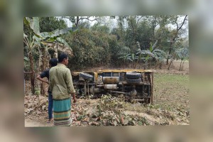 সখীপুরে মাটিবাহী ডাম্প ট্রাক উল্টে খাদে অল্পের জন্য রক্ষা চালক টাঙ্গাইলের সখীপুর উপজেলার হাতীবান্ধা ইউনিয়নের পাটজাগ এলাকায় দিনের বেলায় মাটিবাহী একটি ডাম্প ট্রাক নিয়ন্ত্রণ হারিয়ে রাস্তার পাশের খাদে উল্টে পড়ার ঘটনা ঘটেছে। সোমবার (৯ মার্চ) দুপুরের দিকে এ দুর্ঘটনা ঘটে। এতে বড় ধরনের হতাহতের ঘটনা না ঘটলেও ট্রাকটি ব্যাপক ক্ষতিগ্রস্ত হয়েছে।স্থানীয় সূত্রে জানা যায় উপজেলার একটি উন্নয়নমূলক কাজের জন্য মাটি বহন করে ডাম্প ট্রাকটি পাটজাগ এলাকার একটি সড়ক দিয়ে যাচ্ছিল। পথিমধ্যে রাস্তার এক পাশে হেলে পড়ায় চালক নিয়ন্ত্রণ হারিয়ে ফেলেন। এ সময় ট্রাকটি রাস্তার পাশের গভীর খাদে উল্টে পড়ে যায়।দুর্ঘটনার শব্দ পেয়ে আশপাশের লোকজন দ্রুত ঘটনাস্থলে ছুটে আসেন এবং ট্রাকের চালককে উদ্ধার করেন। স্থানীয়রা জানান অল্পের জন্য বড় ধরনের দুর্ঘটনা থেকে রক্ষা পেয়েছেন চালক।এদিকে দুর্ঘটনার কারণে কিছু সময় ওই সড়কে যান চলাচলে বিঘ্ন ঘটে। পরে স্থানীয়দের সহযোগিতায় পরিস্থিতি স্বাভাবিক করা হয়।এলাকাবাসীর অভিযোগ পাটজাগ এলাকার এই সড়কটি সরু ও অনেক জায়গায় ভাঙাচোরা হওয়ায় প্রায়ই দুর্ঘটনার ঝুঁকি তৈরি হয়। বিশেষ করে মাটিবাহী ট্রাক ও ভারী যানবাহন চলাচলের সময় দুর্ঘটনার আশঙ্কা আরও বেড়ে যায়।তারা দ্রুত সড়কটি সংস্কার ও ভারী যানবাহন চলাচলে নিয়ন্ত্রণ আরোপের দাবি জানিয়েছেন।