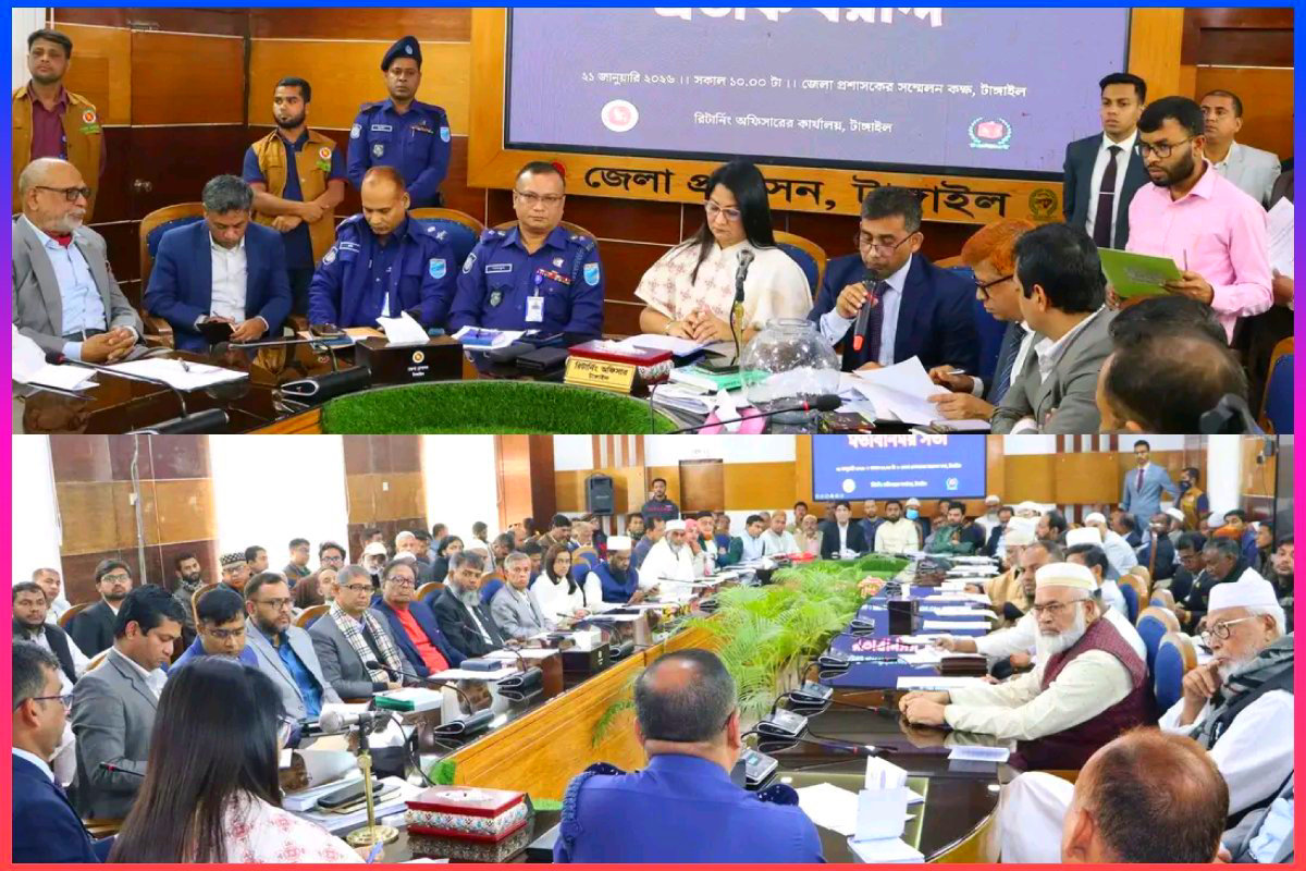 টাঙ্গাইলে ত্রয়োদশ জাতীয় সংসদ নির্বাচন ও গণভোট উপলক্ষে মতবিনিময় সভা ও জনসমাবেশ গণভোটে জনগণের স্বতঃস্ফূর্ত অংশগ্রহণ নিশ্চিতের আহ্বান মাননীয় উপদেষ্টার আসন্ন ত্রয়োদশ জাতীয় সংসদ নির্বাচন ও গণভোটকে সামনে রেখে টাঙ্গাইল জেলায় প্রশাসন ও আইনশৃঙ্খলা বাহিনীর সমন্বয়ে এক গুরুত্বপূর্ণ মতবিনিময় সভা অনুষ্ঠিত হয়েছে। আজ সোমবার (১৯ জানুয়ারি ২০২৬) অনুষ্ঠিত এই সভায় অংশ নেন গণপ্রজাতন্ত্রী বাংলাদেশ সরকারের বিদ্যুৎ, জ্বালানি ও খনিজ সম্পদ মন্ত্রণালয়, সড়ক পরিবহন ও সেতু মন্ত্রণালয় এবং রেলপথ মন্ত্রণালয়ের মাননীয় উপদেষ্টা জনাব মুহাম্মদ ফাওজুল কবির খান। মতবিনিময় সভায় জেলা পর্যায় থেকে উপজেলা পর্যায় পর্যন্ত নির্বাচন সংশ্লিষ্ট প্রশাসনিক ও আইনশৃঙ্খলা বাহিনীর শীর্ষ কর্মকর্তারা উপস্থিত ছিলেন। উপস্থিত কর্মকর্তাদের মধ্যে ছিলেন জেলা প্রশাসক টাঙ্গাইল পুলিশ সুপার টাঙ্গাইল সিনিয়র জেলা নির্বাচন অফিসার টাঙ্গাইলসহ জেলার সকল উপজেলা নির্বাহী অফিসার সকল থানার অফিসার ইনচার্জ উপজেলা নির্বাচন অফিসারবৃন্দ এবং জেলা প্রশাসন টাঙ্গাইলের বিভিন্ন পর্যায়ের কর্মকর্তারা।সভায় আসন্ন নির্বাচন ও গণভোটকে ঘিরে সার্বিক প্রস্তুতি আইনশৃঙ্খলা পরিস্থিতি নিয়ন্ত্রণ ভোটকেন্দ্রের নিরাপত্তা ব্যবস্থা ভোটারদের নির্বিঘ্নে ভোটাধিকার প্রয়োগ নিশ্চিতকরণ এবং নির্বাচনকালীন প্রশাসনিক সমন্বয় বিষয়ে বিস্তারিত আলোচনা করা হয়। এ সময় মাননীয় উপদেষ্টা সংশ্লিষ্ট সকল কর্মকর্তাকে নিরপেক্ষতা পেশাদারিত্ব ও দায়িত্বশীলতার সঙ্গে দায়িত্ব পালনের নির্দেশনা প্রদান করেন।তিনি বলেন গণতন্ত্রের অন্যতম প্রধান ভিত্তি হলো অবাধ সুষ্ঠু ও গ্রহণযোগ্য নির্বাচন এবং গণভোট। জনগণের আস্থা অর্জন করতে হলে প্রশাসন ও আইনশৃঙ্খলা বাহিনীকে সর্বোচ্চ সততা ও নিষ্ঠার সঙ্গে কাজ করতে হবে। তিনি আরও বলেন কোনো প্রকার অনিয়ম বিশৃঙ্খলা বা আইনবহির্ভূত কার্যক্রম বরদাশত করা হবে না এবং এ ক্ষেত্রে জিরো টলারেন্স নীতি অনুসরণ করা হবে।মতবিনিময় সভা শেষে টাঙ্গাইল পৌর উদ্যানে গণভোটের প্রচার ও ভোটার উদ্বুদ্ধকরণ উপলক্ষে আয়োজিত এক বৃহৎ জনসমাবেশে প্রধান অতিথি হিসেবে বক্তব্য রাখেন মাননীয় উপদেষ্টা জনাব মুহাম্মদ ফাওজুল কবির খান। জনসমাবেশে বিভিন্ন শ্রেণি-পেশার মানুষ জনপ্রতিনিধি রাজনৈতিক ব্যক্তিত্ব সুশীল সমাজের প্রতিনিধি ও সাধারণ ভোটাররা উপস্থিত ছিলেন।জনসমাবেশে মাননীয় উপদেষ্টা বলেন গণভোটে জনগণের সক্রিয় ও স্বতঃস্ফূর্ত অংশগ্রহণ নিশ্চিত করাই আমাদের প্রধান লক্ষ্য। একটি শান্তিপূর্ণ স্বচ্ছ ও অংশগ্রহণমূলক গণভোটই দেশের গণতান্ত্রিক অগ্রযাত্রাকে আরও শক্তিশালী করবে। তিনি ভোটারদের নির্ভয়ে ভোটকেন্দ্র