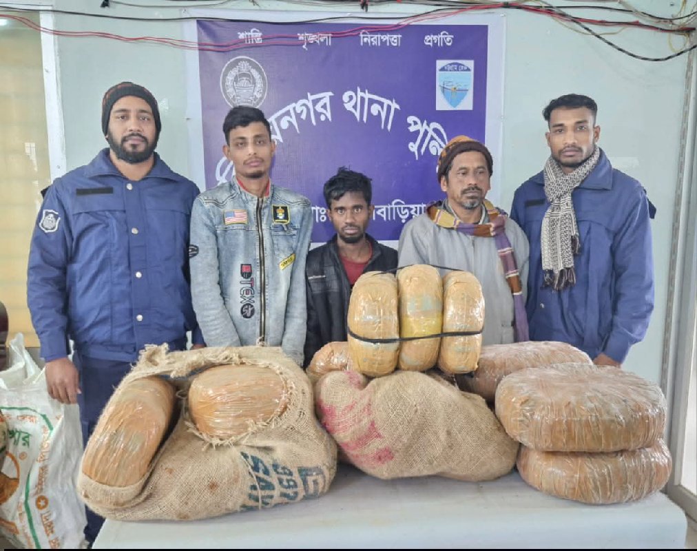 বিজয়নগরে থানা পুলিশের অভিযানে ৩০ কেজি গাঁজা উদ্ধার। অটোরিক্সাসহ ৩ মাদক কারবারি গ্রেফতার ব্রাহ্মণবাড়িয়ার বিজয়নগর উপজেলায় মাদকবিরোধী বিশেষ অভিযানে বিপুল পরিমাণ গাঁজা উদ্ধার করেছে থানা পুলিশ। এ সময় একটি অটোরিক্সাসহ তিনজন পেশাদার মাদক কারবারিকে গ্রেফতার করা হয়েছে। পুলিশ সূত্রে জানা যায়, গত ০৫ জানুয়ারি ২০২৬ খ্রিস্টাব্দ ভোর আনুমানিক ০৬টা ২০ মিনিটে বিজয়নগর থানা পুলিশের একটি চৌকস টিম গোপন সংবাদের ভিত্তিতে অভিযান পরিচালনা করে। অভিযানে উপজেলার ০৭নং সিঙ্গারবিল ইউনিয়নের সিঙ্গারবিল এলাকা থেকে একটি সন্দেহজনক অটোরিক্সা আটক করা হয়। পরবর্তীতে অটোরিক্সাটি তল্লাশি করে এর ভেতর থেকে ৩০ (ত্রিশ) কেজি গাঁজা উদ্ধার করা হয়। এ সময় মাদক পরিবহনে জড়িত ০৩ জন মাদক কারবারিকে হাতেনাতে গ্রেফতার করা হয়। উদ্ধারকৃত গাঁজা ও ব্যবহৃত অটোরিক্সা বিধি মোতাবেক জব্দ তালিকা মূলে জব্দ করা হয়েছে। গ্রেফতারকৃত আসামিদের পরিচয়: ১. মোঃ মাসুক মিয়া (২৯) পিতা: মৃত আঃ লতিফ মাতা: আমেনা বেগম ২. মোঃ রাব্বি মিয়া (২৭) পিতা: মৃত মলাই মিয়া মাতা: জামেলা বেগম উভয়ের ঠিকানা: সাং- কাশিনগর, থানা- বিজয়নগর, জেলা- ব্রাহ্মণবাড়িয়া ৩. মোঃ খোকন মিয়া (৪৮) পিতা: মৃত নজির মিয়া মাতা: মৃত হামিদা বেগম ঠিকানা: সাং- রাজাপুর, থানা- আখাউড়া, জেলা- ব্রাহ্মণবাড়িয়া পুলিশ জানায় গ্রেফতারকৃত আসামিরা দীর্ঘদিন ধরে মাদক পরিবহন ও কারবারের সঙ্গে জড়িত ছিল বলে প্রাথমিক জিজ্ঞাসাবাদে স্বীকার করেছে। এ ঘটনায় বিজয়নগর থানায় মাদকদ্রব্য নিয়ন্ত্রণ আইনে একটি মামলা রুজু করা হয়েছে এবং গ্রেফতারকৃত আসামিদের বিরুদ্ধে আইনানুগ ব্যবস্থা গ্রহণ প্রক্রিয়াধীন রয়েছে। বিজয়নগর থানা পুলিশ মাদকমুক্ত সমাজ গঠনে এ ধরনের অভিযান অব্যাহত থাকবে বলে জানিয়েছেন সংশ্লিষ্ট কর্মকর্তারা।