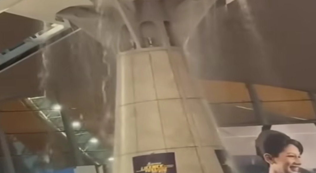 কুয়ালালামপুর আন্তর্জাতিক বিমানবন্দর (KLIA) টার্মিনাল–১ এ আজ বিকেলে ভারী বৃষ্টির পর সিলিং ফুটো হয়ে ভেতরে পানি ঢুকে পড়ে। সোশ্যাল মিডিয়ায় ছড়িয়ে পড়া ভিডিওতে দেখা যায়, ডিপার্চার হলে ছাদের একটি অংশ থেকে দ্রুতগতিতে পানি পড়ছে, আর যাত্রীরা পাশে সরে গিয়ে নিরাপদে থাকতে চেষ্টা করছেন।