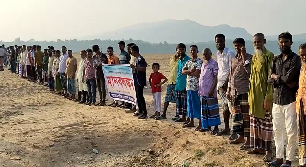 মানববন্ধন শেষে হাজারো জনতা বিক্ষোভ মিছিল করে ইজারাদারের কালো হাত ভেঙ্গে দাও শ্লোগান দেন।