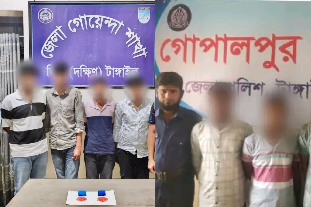 টাঙ্গাইলে পুলিশের অভিযানে গ্রেফতার ৩৯মাদক উদ্ধার আটক ১৩ ব্যবসায়ী মো: সাজিদ পিয়াল, জেলা প্রতিনিধি, টাঙ্গাইল ৭ এপ্রিল ২০২৬ ইং টাঙ্গাইল জেলায় আইন-শৃঙ্খলা পরিস্থিতি নিয়ন্ত্রণে জেলা পুলিশের বিশেষ অভিযানে গত ২৪ ঘণ্টায় প্রিভেন্টিভ নিয়মিত মামলা ও পরোয়ানাভুক্ত আসামিসহ মোট ৩৯ জনকে গ্রেফতার করা হয়েছে।জেলা পুলিশ সূত্র জানায় অপরাধ দমন ও মাদক নির্মূলে জোরদার কার্যক্রমের অংশ হিসেবে জেলার সব থানা ও ইউনিটকে মাঠ পর্যায়ে সক্রিয় থাকার নির্দেশনা দেওয়া হয়। এরই ধারাবাহিকতায় সমন্বিত অভিযানে এসব গ্রেফতার সম্পন্ন হয়।এদিকে পৃথক মাদকবিরোধী অভিযানে ১২১ পিস ইয়াবা ৮ গ্রাম হেরোইন ২০ পিস ট্যাপেন্টাডল ট্যাবলেট এবং ১ কেজি ৭০ গ্রাম গাঁজা উদ্ধার করা হয়েছে। এ সময় ১৩ জন মাদক ব্যবসায়ীকে আটক করা হয়।পুলিশ জানিয়েছে গ্রেফতারকৃতদের বিরুদ্ধে সংশ্লিষ্ট থানায় আইনগত ব্যবস্থা গ্রহণ প্রক্রিয়াধীন রয়েছে।জেলা পুলিশ আরও জানায় মাদকসহ সব ধরনের অপরাধ দমনে এ ধরনের অভিযান ভবিষ্যতেও অব্যাহত থাকবে। পাশাপাশি অপরাধ সংক্রান্ত যেকোনো তথ্য দিতে জনগণকে এগিয়ে আসার আহ্বান জানানো হয়েছে।