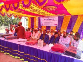 মোস্তফা মাসুদ: শীতের তীব্রতা বাড়তে থাকায় অসহায় ও দুস্থ মানুষের দুর্ভোগ লাঘবে সাতক্ষীরার কালিগঞ্জ উপজেলার ধলবাড়িয়া ইউনিয়নের খুব্দীপুর ও আব্দুলখালী গ্রামে শীতার্ত মানুষের মাঝে কম্বল বিতরণ করা হয়েছে। খুব্দীপুর সরকারি প্রাথমিক বিদ্যালয় মাঠে আয়োজিত এ কর্মসূচিতে প্রথম ধাপে দেড় শতাধিক (১৫০) কম্বল বিতরণ করা হয়। ধলবাড়িয়া ইউনিয়ন পরিষদের ৭ নম্বর ওয়ার্ডের ইউপি সদস্য ও সাংবাদিক এস. এম. গোলাম ফারুক এবং সৌদি প্রবাসী আব্দুল জলিলের অর্থায়ন ও সার্বিক তত্ত্বাবধানে আয়োজিত এ কম্বল বিতরণ কর্মসূচিতে বয়স্ক, বিধবা ও প্রতিবন্ধী নারী-পুরুষদের অগ্রাধিকার দেওয়া হয়। অনুষ্ঠানে সভাপতিত্ব করেন বিশিষ্ট সমাজসেবক আলহাজ্ব শেখ গোলাম মাহমুদ এবং সঞ্চালনা করেন জাতীয় ধারাভাষ্যকার ইসমাইল হোসেন মিলন।প্রধান অতিথি হিসেবে উপস্থিত থেকে বক্তব্য রাখেন ধলবাড়িয়া ইউনিয়ন পরিষদের চেয়ারম্যান আলহাজ্ব গাজী শওকাত হোসেন। প্রধান অতিথির বক্তব্যে আলহাজ্ব গাজী শওকাত হোসেন বলেন, “শীত মৌসুমে হতদরিদ্র মানুষের পাশে দাঁড়ানো সমাজের সকল শ্রেণি-পেশার মানুষের নৈতিক দায়িত্ব। এ ধরনের মানবিক উদ্যোগ শীতার্ত মানুষের কষ্ট লাঘবে গুরুত্বপূর্ণ ভূমিকা রাখে। ইউপি সদস্য এস. এম. গোলাম ফারুক ও তাঁর চাচাতো ভাই সৌদি প্রবাসী আব্দুল জলিলের এই মহতী উদ্যোগ নিঃসন্দেহে প্রশংসনীয় ও অনুসরণযোগ্য। অনুষ্ঠানে বিশেষ অতিথি হিসেবে বক্তব্য রাখেন" কালিগঞ্জ প্রেসক্লাবের সভাপতি শেখ সাইফুল বারী সফু, সাধারণ সম্পাদক সুকুমার দাস বাচ্চু, কালিগঞ্জ জাতীয় সাংবাদিক সংস্থার সভাপতি এম. হাফিজুর রহমান শিমুল, উপজেলা দুর্নীতি প্রতিরোধ কমিটির সভাপতি ও বেসরকারি উন্নয়ন সংস্থা সুশীলনের পরিচালক মোস্তফা আক্তারুজ্জামান পল্টু, ইউপি সদস্যা সুফিয়া বেগম, ইউপি সদস্য খায়রুল আলম রুবেল, সাবেক ইইপি সচিব সম আব্দুর রশিদ, বীর মুক্তিযোদ্ধা এস. এম. শাহাদাত হোসেন ও ফজলুর রহমান। এসময় আরও উপস্থিত ছিলেন সাবেক ইউপি সদস্য আব্দুল বারী তরফদার, খুব্দীপুর সরকারি প্রাথমিক বিদ্যালয়ের প্রধান শিক্ষক সন্ধ্যা রানী বিশ্বাস, সহকারী শিক্ষক আইনুল হক, আব্দুল মাজেদ, মোক্তার হোসেন, সোহারাব হোসেন, আব্দুল করিম তরফদার, জয়নাল তরফদারসহ এলাকার গণ্যমান্য ব্যক্তিবর্গ।আয়োজকরা জানান, শীত মৌসুমজুড়ে পর্যায়ক্রমে আরও শীতবস্ত্র বিতরণের পরিকল্পনা রয়েছে। মানবিক এই উদ্যোগে এলাকার শীতার্ত মানুষ স্বস্তি প্রকাশ করেন এবং আয়োজকদের প্রতি কৃতজ্ঞতা জানান।