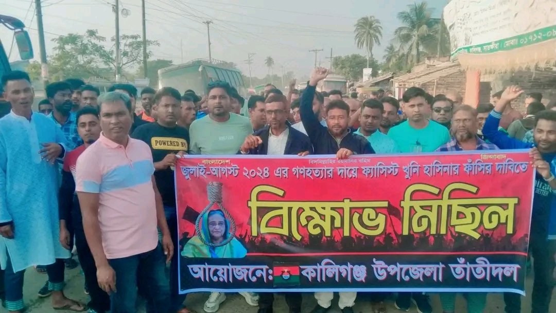 সাতক্ষীরা কালিগঞ্জে জুলাই–আগস্ট ২০২৪ সালের ঘটনার বিচার দাবিতে তাঁতীদলের বিশাল বিক্ষোভ মিছিল