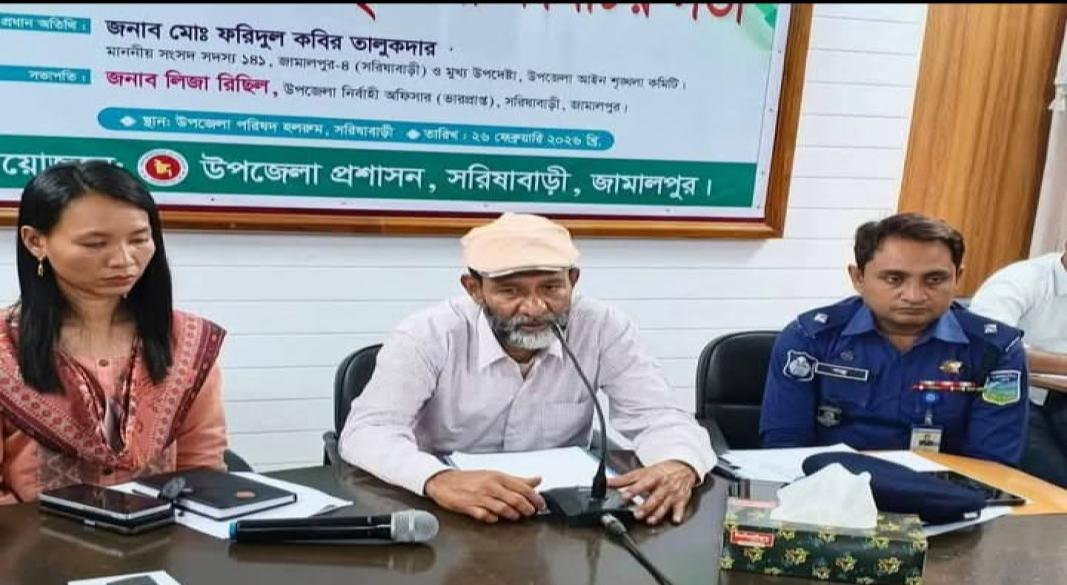 সরিষাবাড়ী উপজেলা প্রশাসনের উদ্যোগে আইন-শৃঙ্খলা পরিস্থিতি স্থিতিশীল রাখা ও সামগ্রিক নিরাপত্তা জোরদার করার লক্ষ্যে এক জরুরি মতবিনিময় সভা অনুষ্ঠিত হয়েছে।