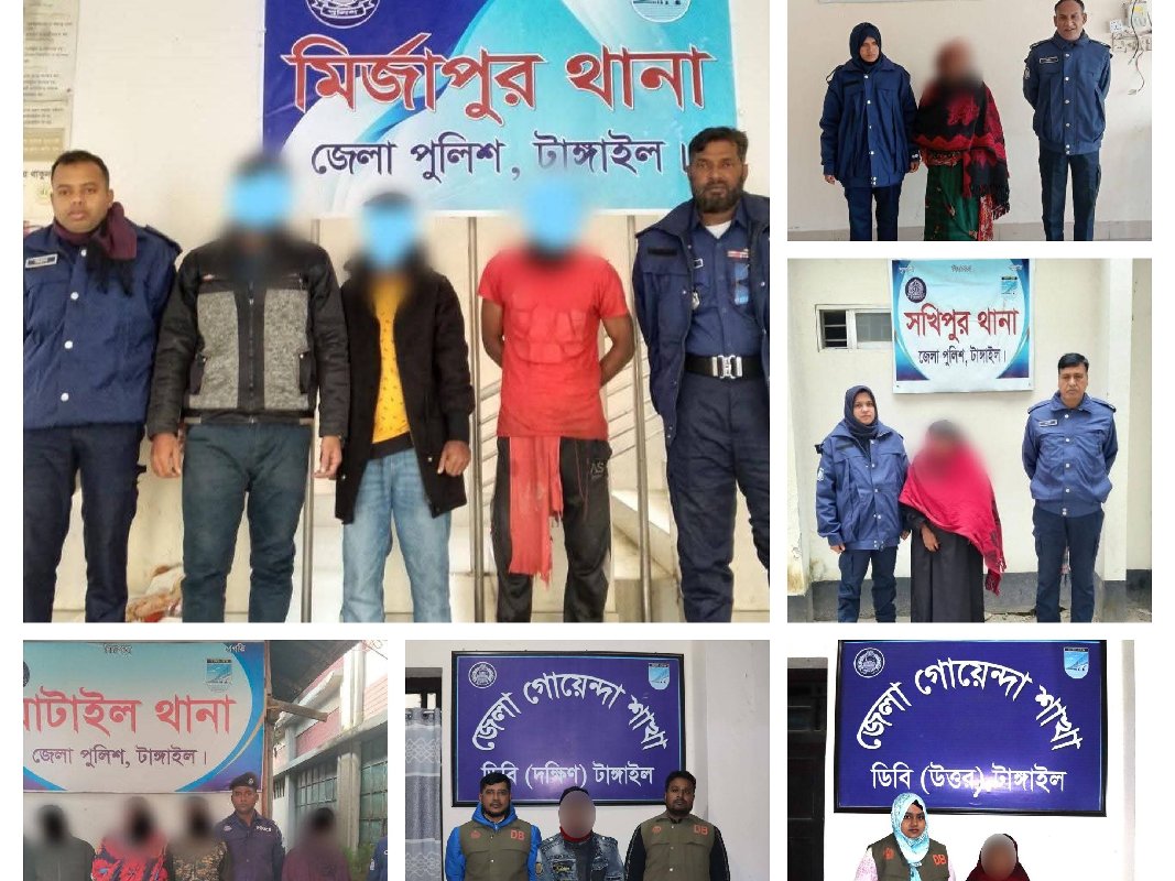 টাঙ্গাইল জেলা পুলিশের অভিযানে মাদক উদ্ধারসহ বিভিন্ন মামলায় গ্রেফতার ২৬