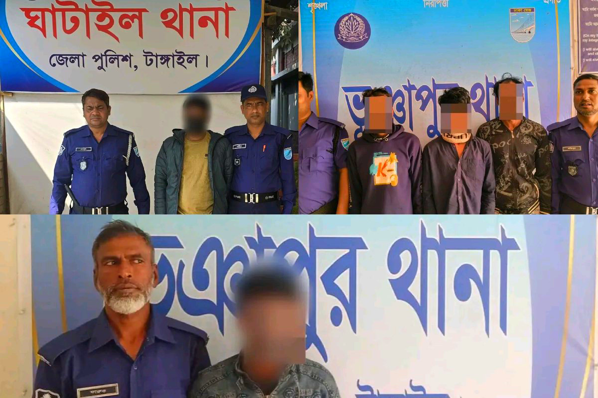 টাঙ্গাইলে জেলা পুলিশের বিশেষ অভিযানে ১২ জন গ্রেপ্তার প্রিভেন্টিভ পরোয়ানাভুক্ত ও নিয়মিত মামলায় ২৪ ঘণ্টায় জোরদার সাফল্য ১৫ ফেব্রুয়ারি ২০২৬ ইং তারিখে অপরাধ নিয়ন্ত্রণ ও আইন-শৃঙ্খলা পরিস্থিতি স্বাভাবিক রাখতে টাঙ্গাইল জেলা পুলিশের চলমান বিশেষ অভিযানে গত ২৪ ঘণ্টায় প্রিভেন্টিভ পরোয়ানাভুক্ত ও নিয়মিত মামলায় সর্বমোট ১২ জনকে গ্রেপ্তার করা হয়েছে। জেলার বিভিন্ন থানা ও ইউনিটের সমন্বিত অভিযানে এ সাফল্য অর্জিত হয়।জেলা পুলিশ সূত্রে জানা গেছে মাদকদ্রব্য নিয়ন্ত্রণ পলাতক আসামি গ্রেপ্তার এবং নিয়মিত মামলার আসামিদের আইনের আওতায় আনতে কঠোর অবস্থান গ্রহণ করা হয়েছে। এ লক্ষ্যে জেলার সকল থানা ও ইউনিটের ইনচার্জদের মাঠপর্যায়ে সক্রিয় থেকে অভিযান পরিচালনার নির্দেশ প্রদান করেন টাঙ্গাইলের পুলিশ সুপার মুহম্মদ শামসুল আলম সরকার।পুলিশ সুপার তার নির্দেশনায় বলেন অপরাধ দমনে নিয়মিত টহল জোরদার গোয়েন্দা নজরদারি বৃদ্ধি এবং পরোয়ানাভুক্ত আসামিদের দ্রুত গ্রেপ্তারে সর্বোচ্চ গুরুত্ব দিতে হবে। জননিরাপত্তা নিশ্চিত করতে কোনো ধরনের শৈথিল্য বরদাশত করা হবে না। তাঁর নির্দেশনার পরিপ্রেক্ষিতে জেলার বিভিন্ন এলাকায় একযোগে অভিযান পরিচালনা করা হয়।পুলিশ জানায়গ্রেপ্তারদের মধ্যে প্রিভেন্টিভ ধারায় আটক ব্যক্তি ছাড়াও নিয়মিত মামলার আসামি ও আদালতের পরোয়ানাভুক্ত পলাতক আসামিরা রয়েছে। গ্রেপ্তারদের বিরুদ্ধে আইনানুগ ব্যবস্থা গ্রহণ করে আদালতে সোপর্দ করার প্রক্রিয়া চলছে।জেলা পুলিশের পক্ষ থেকে আরও জানানো হয়েছে অপরাধ প্রতিরোধ ও মাদক নির্মূলে এ ধরনের অভিযান অব্যাহত থাকবে। পাশাপাশি জনগণের সহযোগিতা কামনা করে জেলা পুলিশ তাদের সচেতনতামূলক বার্তায় বলেছে।
