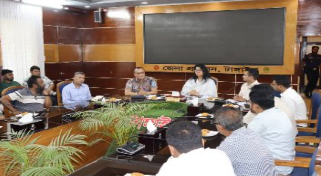 টাঙ্গাইলে পেট্রোল পাম্প মালিকদের সঙ্গে মতবিনিময় সভা: জ্বালানি সংকট মোকাবিলায় কড়া মনিটরিংয়ের নির্দেশনা। জ্বালানি তেলের চলমান সংকট পরিস্থিতিতে টাঙ্গাইল জেলার পেট্রোল পাম্পসমূহে শৃঙ্খলা ফিরিয়ে আনতে এবং ভোক্তা স্বার্থ সুরক্ষায় জেলা প্রশাসনের উদ্যোগে এক গুরুত্বপূর্ণ মতবিনিময় সভা অনুষ্ঠিত হয়েছে। জেলা প্রশাসনের আয়োজনে জেলা প্রশাসকের সম্মেলন কক্ষে অনুষ্ঠিত এ সভায় জেলার পেট্রোল পাম্প মালিক ও পেট্রোল পাম্প সমিতির প্রতিনিধিরা অংশগ্রহণ করেন। সভায় সভাপতিত্ব করেন টাঙ্গাইলের জেলা প্রশাসক ও বিজ্ঞ জেলা ম্যাজিস্ট্রেট জনাব শরীফা হক। এতে বিশেষ অতিথি হিসেবে উপস্থিত ছিলেন পুলিশ সুপার জনাব মুহম্মদ শামসুল আলম সরকার।সভায় বক্তারা বর্তমান পেট্রোল ও অকটেন সংকটের প্রেক্ষাপটে উদ্ভূত পরিস্থিতি নিয়ে বিস্তারিত আলোচনা করেন। বিশেষ করে ঢাকা-টাঙ্গাইল মহাসড়ক সংলগ্ন পেট্রোল পাম্পগুলোতে তদারকি কার্যক্রম জোরদার করার ওপর গুরুত্বারোপ করা হয়। একই সঙ্গে ভোক্তাদের ভোগান্তি কমানো কৃত্রিম সংকট প্রতিরোধ এবং স্বচ্ছতার সঙ্গে জ্বালানি বিক্রি নিশ্চিত করতে সংশ্লিষ্টদের প্রতি কঠোর নির্দেশনা প্রদান করা হয়।জেলা প্রশাসক তাঁর বক্তব্যে বলেন সরকার নির্ধারিত নির্দেশনা অমান্য করে কোনো ধরনের অনিয়ম বরদাস্ত করা হবে না। তিনি সকল পেট্রোল পাম্প মালিককে দায়িত্বশীলতার সঙ্গে ব্যবসা পরিচালনার আহ্বান জানান এবং যেকোনো অনিয়মের তথ্য দ্রুত প্রশাসন ও আইনশৃঙ্খলা বাহিনীকে অবহিত করার নির্দেশ দেন। পুলিশ সুপারও জ্বালানি খাতে শৃঙ্খলা বজায় রাখতে আইনশৃঙ্খলা বাহিনীর কঠোর অবস্থানের কথা তুলে ধরেন। তিনি বলেন, অনিয়ম বা কারসাজির সঙ্গে জড়িতদের বিরুদ্ধে প্রয়োজনীয় আইনগত ব্যবস্থা গ্রহণ করা হবে।সভায় অতিরিক্ত জেলা প্রশাসকসহ বিভিন্ন সরকারি-বেসরকারি দপ্তরের কর্মকর্তা টাঙ্গাইল জেলা পেট্রোল পাম্প মালিক এবং পেট্রোল পাম্প সমিতির প্রতিনিধিরা উপস্থিত ছিলেন।সংশ্লিষ্টদের মতে এ ধরনের মতবিনিময় সভা জ্বালানি খাতে স্বচ্ছতা ও জবাবদিহিতা নিশ্চিত করতে গুরুত্বপূর্ণ ভূমিকা রাখবে।
