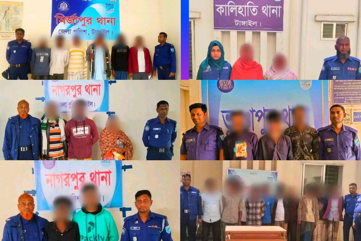 টাঙ্গাইলে জেলা পুলিশের বিশেষ অভিযানে ১২ জন গ্রেপ্তার প্রিভেন্টিভ পরোয়ানাভুক্ত ও নিয়মিত মামলায় ২৪ ঘণ্টায় জোরদার সাফল্য ১৫ ফেব্রুয়ারি ২০২৬ ইং তারিখে অপরাধ নিয়ন্ত্রণ ও আইন-শৃঙ্খলা পরিস্থিতি স্বাভাবিক রাখতে টাঙ্গাইল জেলা পুলিশের চলমান বিশেষ অভিযানে গত ২৪ ঘণ্টায় প্রিভেন্টিভ পরোয়ানাভুক্ত ও নিয়মিত মামলায় সর্বমোট ১২ জনকে গ্রেপ্তার করা হয়েছে। জেলার বিভিন্ন থানা ও ইউনিটের সমন্বিত অভিযানে এ সাফল্য অর্জিত হয়।জেলা পুলিশ সূত্রে জানা গেছে মাদকদ্রব্য নিয়ন্ত্রণ পলাতক আসামি গ্রেপ্তার এবং নিয়মিত মামলার আসামিদের আইনের আওতায় আনতে কঠোর অবস্থান গ্রহণ করা হয়েছে। এ লক্ষ্যে জেলার সকল থানা ও ইউনিটের ইনচার্জদের মাঠপর্যায়ে সক্রিয় থেকে অভিযান পরিচালনার নির্দেশ প্রদান করেন টাঙ্গাইলের পুলিশ সুপার মুহম্মদ শামসুল আলম সরকার।পুলিশ সুপার তার নির্দেশনায় বলেন অপরাধ দমনে নিয়মিত টহল জোরদার গোয়েন্দা নজরদারি বৃদ্ধি এবং পরোয়ানাভুক্ত আসামিদের দ্রুত গ্রেপ্তারে সর্বোচ্চ গুরুত্ব দিতে হবে। জননিরাপত্তা নিশ্চিত করতে কোনো ধরনের শৈথিল্য বরদাশত করা হবে না। তাঁর নির্দেশনার পরিপ্রেক্ষিতে জেলার বিভিন্ন এলাকায় একযোগে অভিযান পরিচালনা করা হয়।পুলিশ জানায়গ্রেপ্তারদের মধ্যে প্রিভেন্টিভ ধারায় আটক ব্যক্তি ছাড়াও নিয়মিত মামলার আসামি ও আদালতের পরোয়ানাভুক্ত পলাতক আসামিরা রয়েছে। গ্রেপ্তারদের বিরুদ্ধে আইনানুগ ব্যবস্থা গ্রহণ করে আদালতে সোপর্দ করার প্রক্রিয়া চলছে।জেলা পুলিশের পক্ষ থেকে আরও জানানো হয়েছে অপরাধ প্রতিরোধ ও মাদক নির্মূলে এ ধরনের অভিযান অব্যাহত থাকবে। পাশাপাশি জনগণের সহযোগিতা কামনা করে জেলা পুলিশ তাদের সচেতনতামূলক বার্তায় বলেছে।