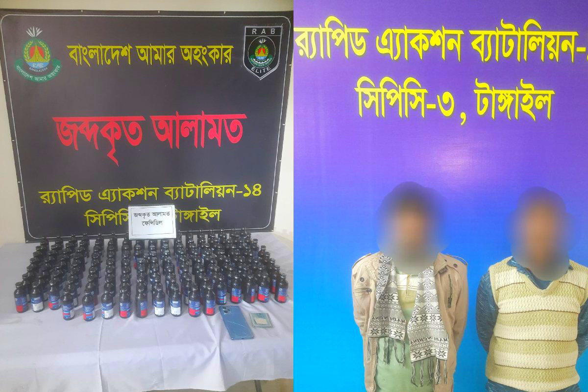 টাঙ্গাইলে র‍্যাবের পৃথক অভিযানে ১৪৫ বোতল ফেনসিডিলসহ ২ মাদক কারবারি গ্রেফতার