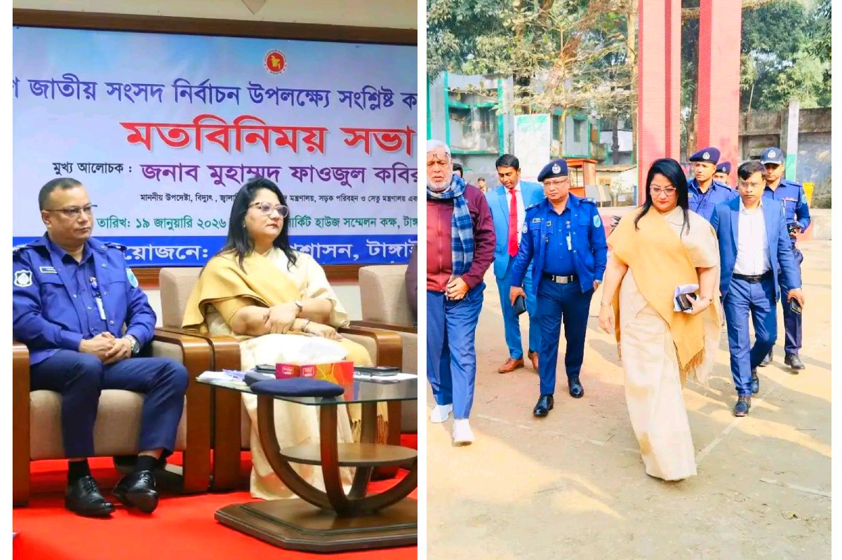 সখিপুরে জাতীয় সংসদ নির্বাচন প্রস্তুতি পরিদর্শনে জেলা প্রশাসক প্রিজাইডিং অফিসারদের নিরপেক্ষতার নির্দেশ ভোটকেন্দ্রে আইপি ক্যামেরা স্থাপনের তাগিদ আসন্ন ত্রয়োদশ জাতীয় সংসদ নির্বাচনকে সামনে রেখে টাঙ্গাইল জেলার সখিপুর উপজেলা পরিদর্শন করেছেন জেলা প্রশাসক ও বিজ্ঞ জেলা ম্যাজিস্ট্রেট এবং জেলা রিটার্নিং অফিসার,টাঙ্গাইল। সোমবার (২৬ জানুয়ারি ২০২৬) দিনব্যাপী এই পরিদর্শন কার্যক্রম পরিচালিত হয়।পরিদর্শনকালে জেলা প্রশাসক নির্বাচন উপলক্ষ্যে প্রিজাইডিং অফিসারদের জন্য আয়োজিত প্রশিক্ষণ কর্মশালায় প্রধান অতিথি হিসেবে বক্তব্য রাখেন। এ সময় তিনি নির্বাচন পরিচালনায় সর্বোচ্চ নিষ্ঠা আন্তরিকতা ও নিরপেক্ষতা বজায় রেখে দায়িত্ব পালনের জন্য প্রিজাইডিং অফিসারদের প্রতি কঠোর নির্দেশনা প্রদান করেন। তিনি বলেন একটি অবাধ সুষ্ঠু ও গ্রহণযোগ্য নির্বাচন নিশ্চিত করতে মাঠপর্যায়ের কর্মকর্তাদের দায়িত্বশীল ভূমিকা অত্যন্ত গুরুত্বপূর্ণ। এছাড়া তিনি উপজেলা পর্যায়ে কর্মরত আইন-শৃঙ্খলা বাহিনীর সদস্যদের সঙ্গে এক মতবিনিময় সভায় অংশগ্রহণ করেন। সভায় পারস্পরিক সমন্বয়ের মাধ্যমে নির্বাচনকালীন আইন-শৃঙ্খলা পরিস্থিতি স্বাভাবিক ও নিয়ন্ত্রণে রাখার বিষয়ে প্রয়োজনীয় দিকনির্দেশনা দেন জেলা প্রশাসক।পরিদর্শনের অংশ হিসেবে জেলা প্রশাসক সখিপুর উপজেলার একাধিক ভোটকেন্দ্র ঘুরে দেখেন। ভোটগ্রহণ প্রক্রিয়ায় সর্বোচ্চ স্বচ্ছতা ও জবাবদিহিতা নিশ্চিত করতে দ্রুততম সময়ের মধ্যে সকল ভোটকেন্দ্রে আইপি ক্যামেরা স্থাপনের নির্দেশ দেন তিনি।এ সময় আরও উপস্থিত ছিলেন পুলিশ সুপার টাঙ্গাইল অতিরিক্ত জেলা প্রশাসক (সার্বিক) অতিরিক্ত জেলা ম্যাজিস্ট্রেট সিনিয়র জেলা নির্বাচন অফিসার টাঙ্গাইল উপজেলা নির্বাহী অফিসার সখিপুরসহ বিভিন্ন দপ্তরের সংশ্লিষ্ট কর্মকর্তাবৃন্দ এবং আইন-শৃঙ্খলা বাহিনীর সদস্যরা।জেলা প্রশাসনের পক্ষ থেকে জানানো হয় সখিপুর উপজেলায় একটি শান্তিপূর্ণ অবাধ ও সুষ্ঠু নির্বাচন নিশ্চিত করতে প্রশাসন সর্বাত্মক প্রস্তুতি গ্রহণ করেছে এবং এই প্রস্তুতি কার্যক্রম অব্যাহত থাকবে।