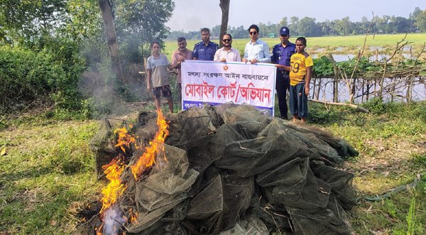 টাঙ্গাইলের বাসাইলে অভিযান চালিয়ে প্রায় ৫০০ মিটার চায়না দুয়ারী জাল জব্দ করে পুড়িয়ে ধ্বংস করা হয়েছে।